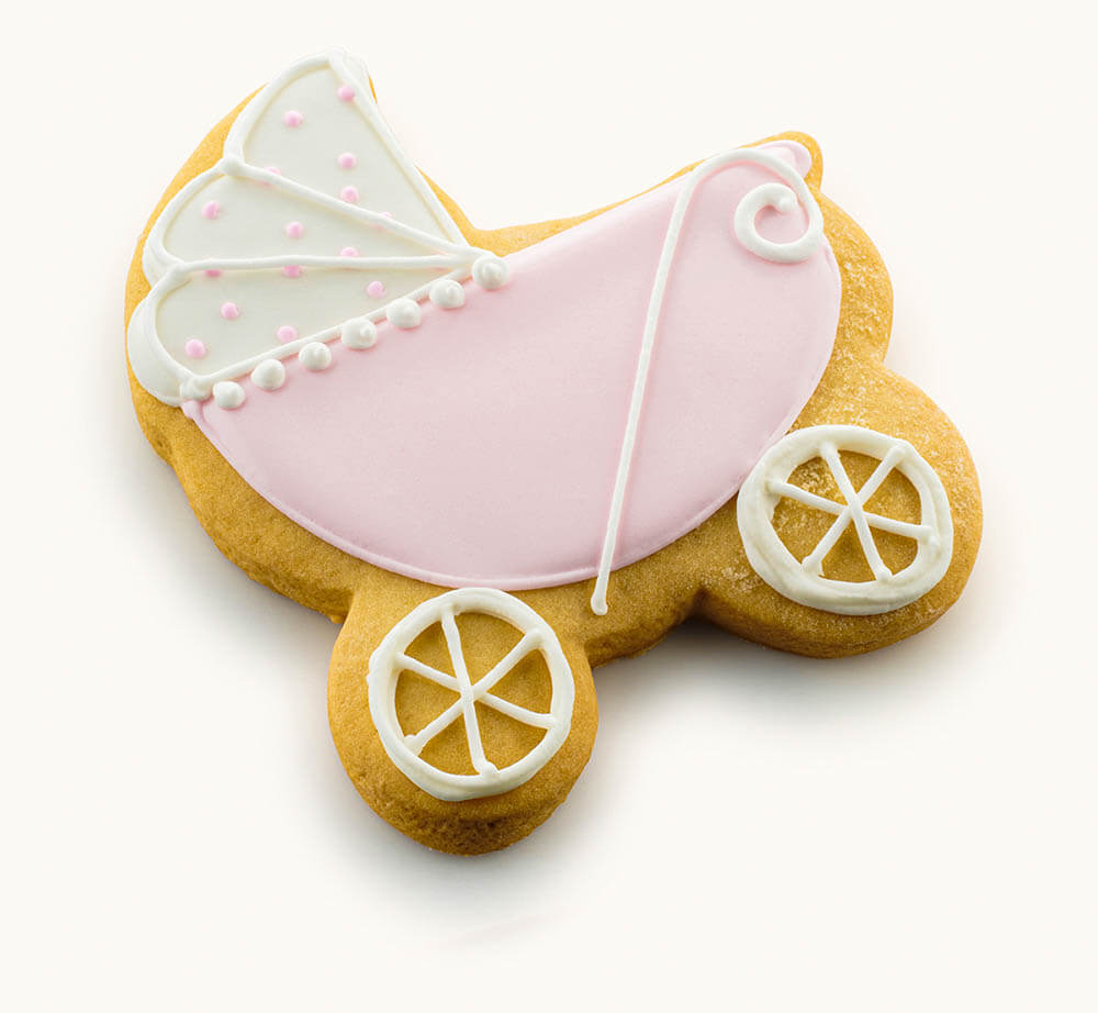 Decorative cookies that are too beautiful to eat, these Baby Girl Stroller Cookies will be the most memorable thing at your baby girl's shower.