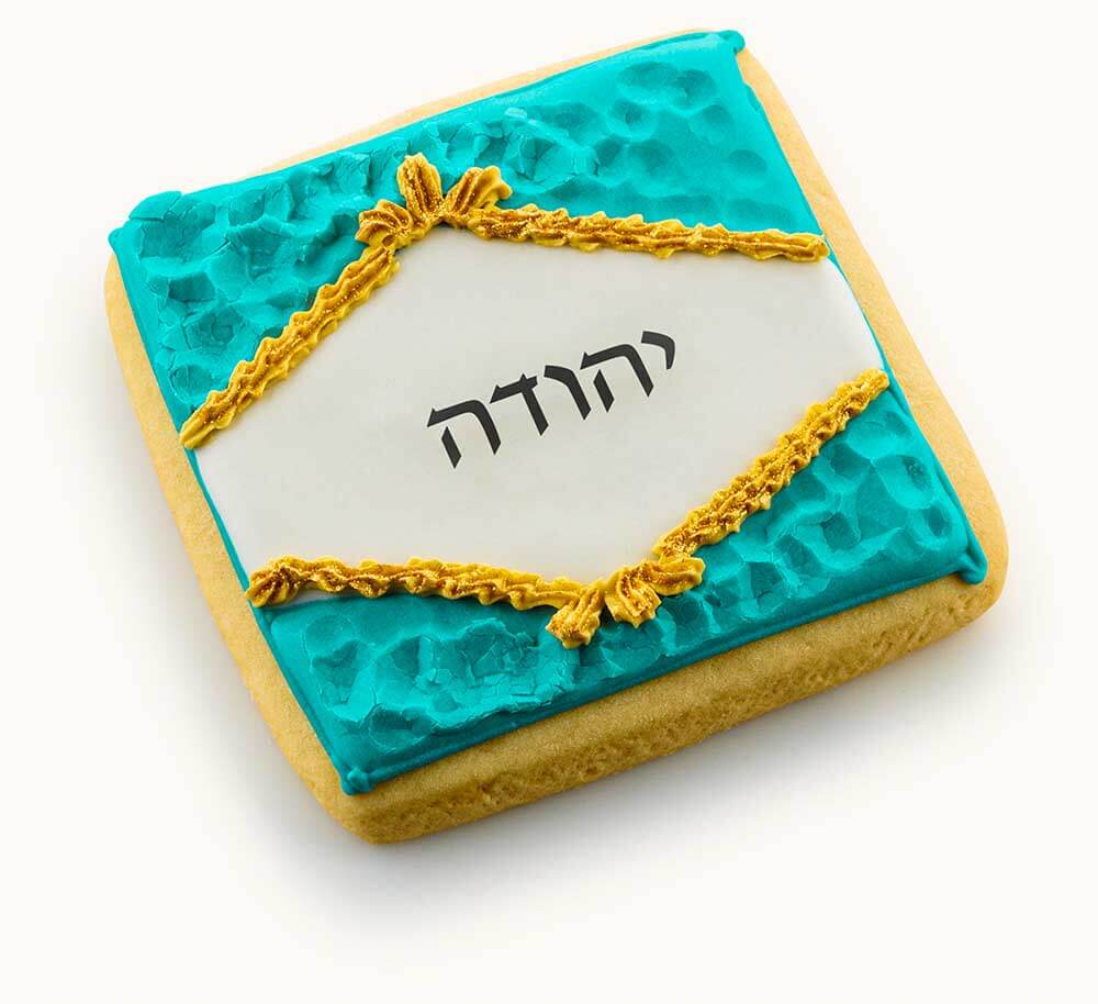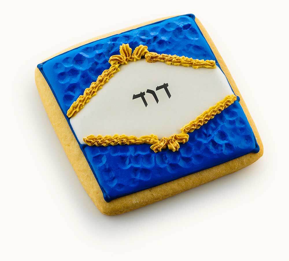 Take your bar mitzvah celebration up a notch with these sophisticated tefillin bag cookies. Have a name added in English or Hebrew for an extra personal and custom cookie touch.