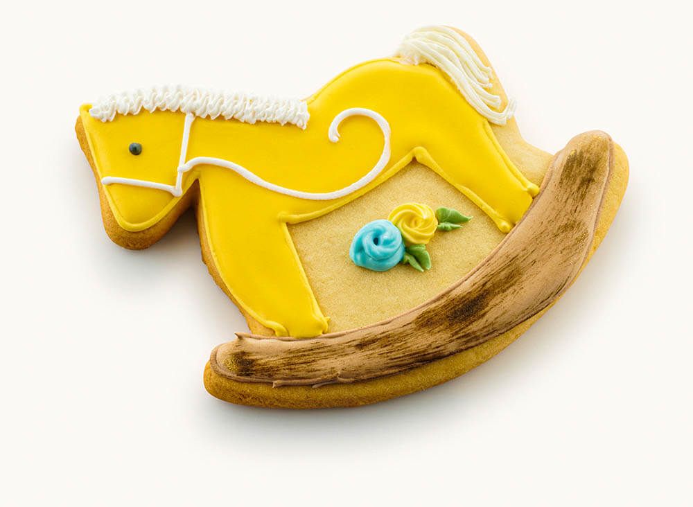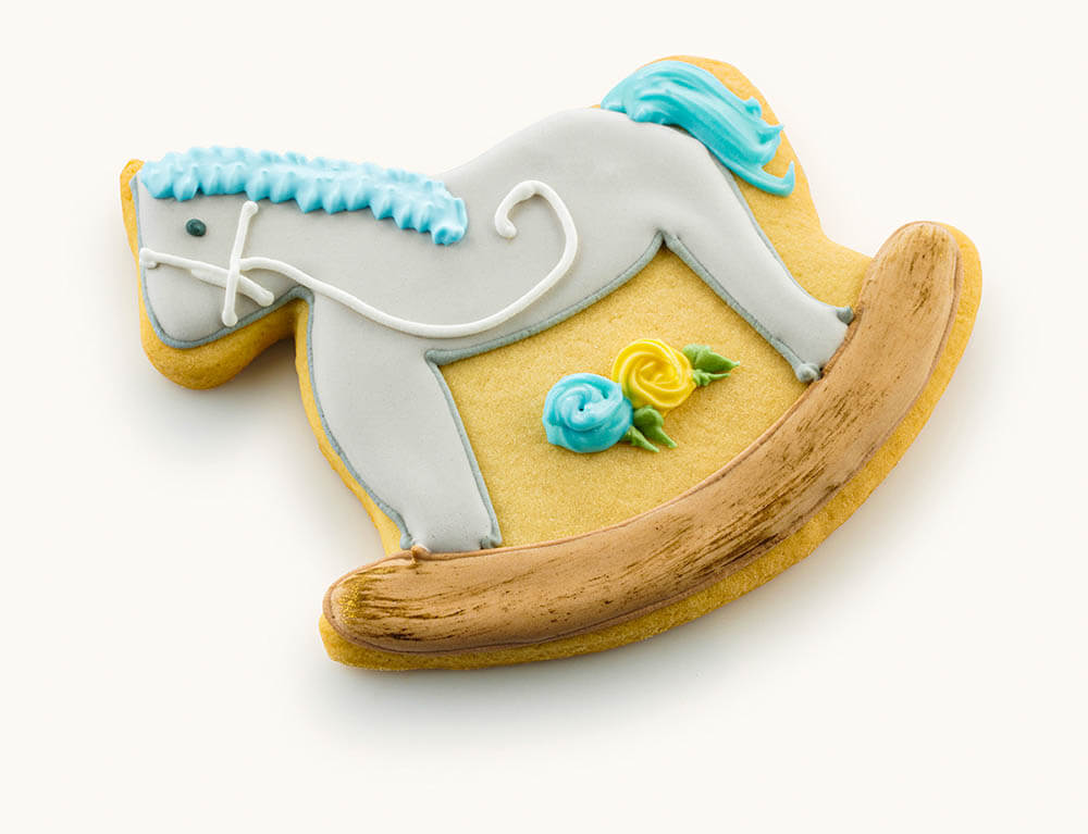 Custom Cookies for every occasion! These Boy Rocking Horse Cookies are a unique and creative addition to your baby shower.