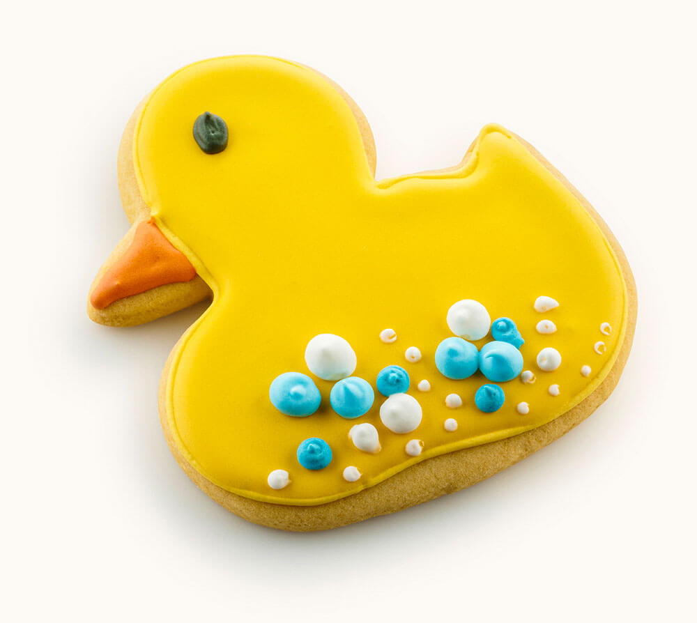 Bright and sunny yellow Duck Cookies! Bring happiness to your baby shower, birthday party, or theme events with kid-friendly personalized cookies.