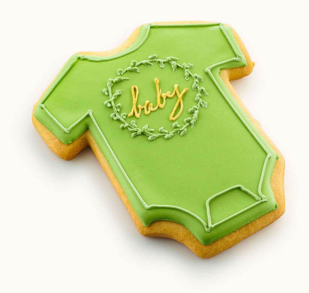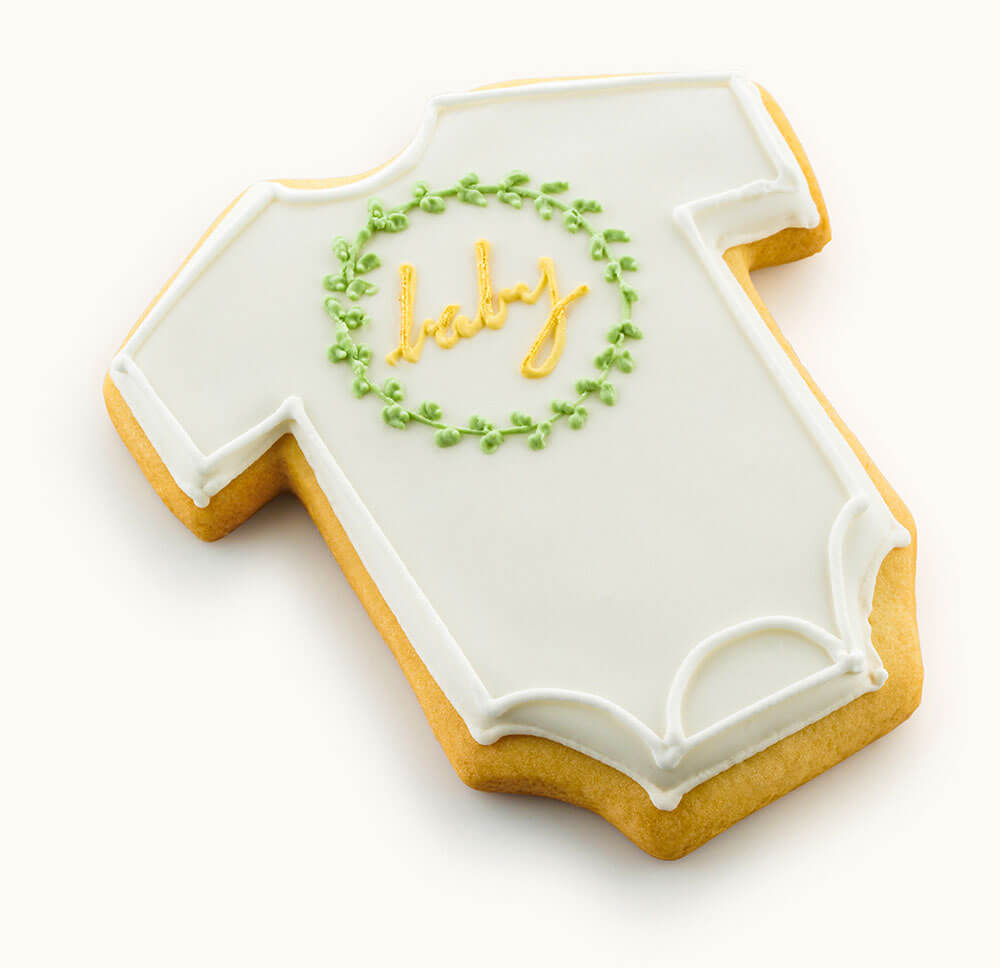 Add to the surprise with custom cookies! These Baby Neutral Onesie Shower Cookies are delicately decorated and delicious, perfectly crafted for your gender reveal or baby shower.